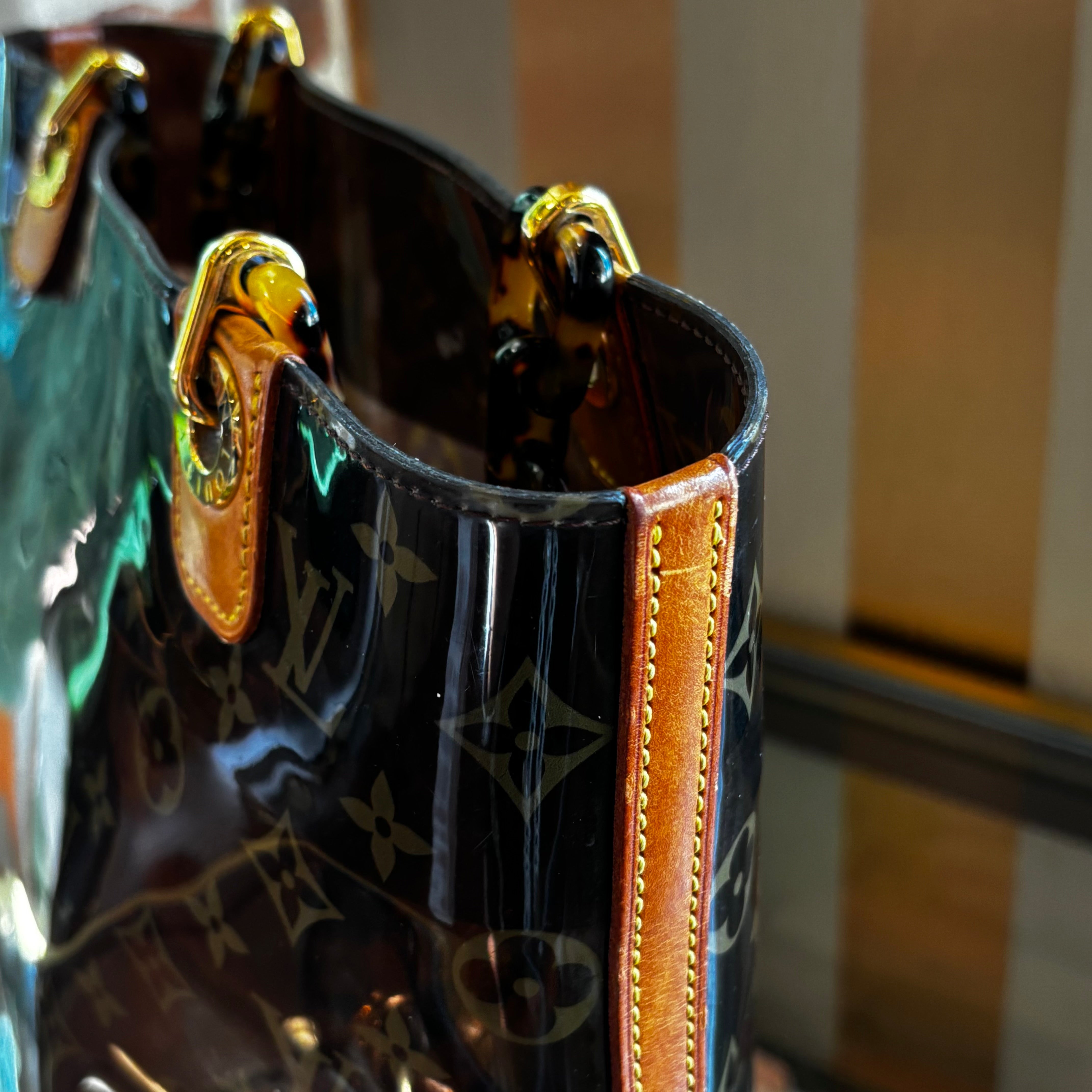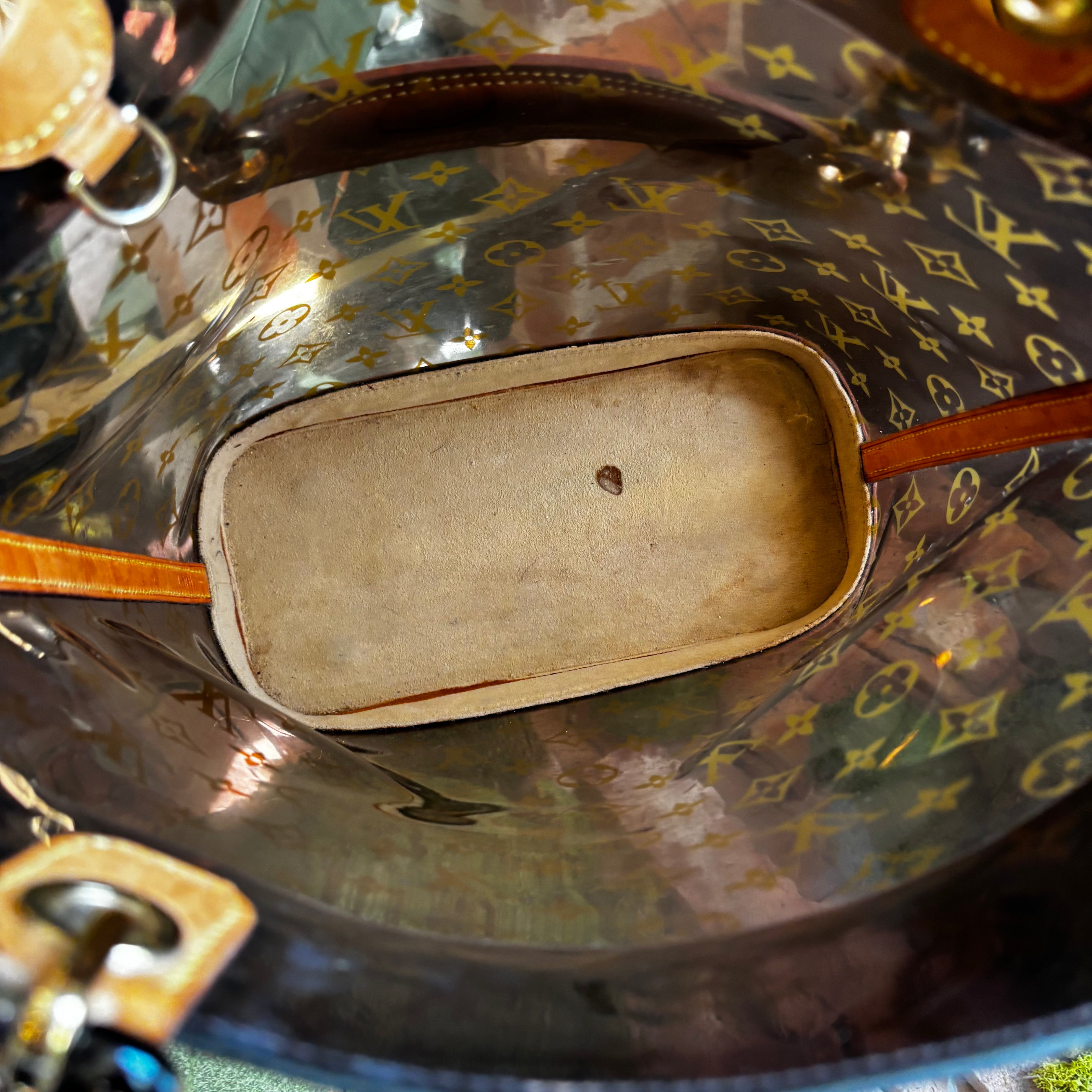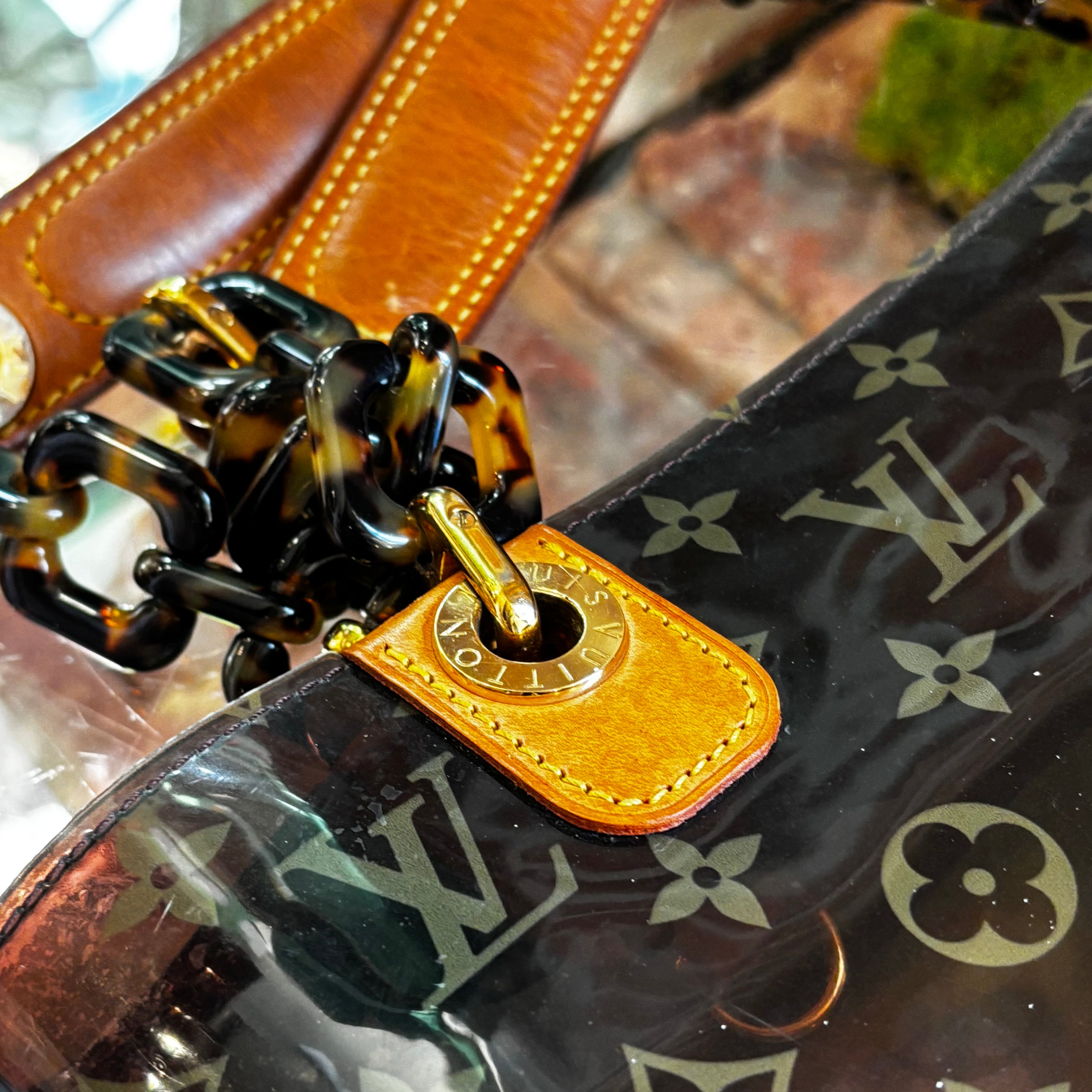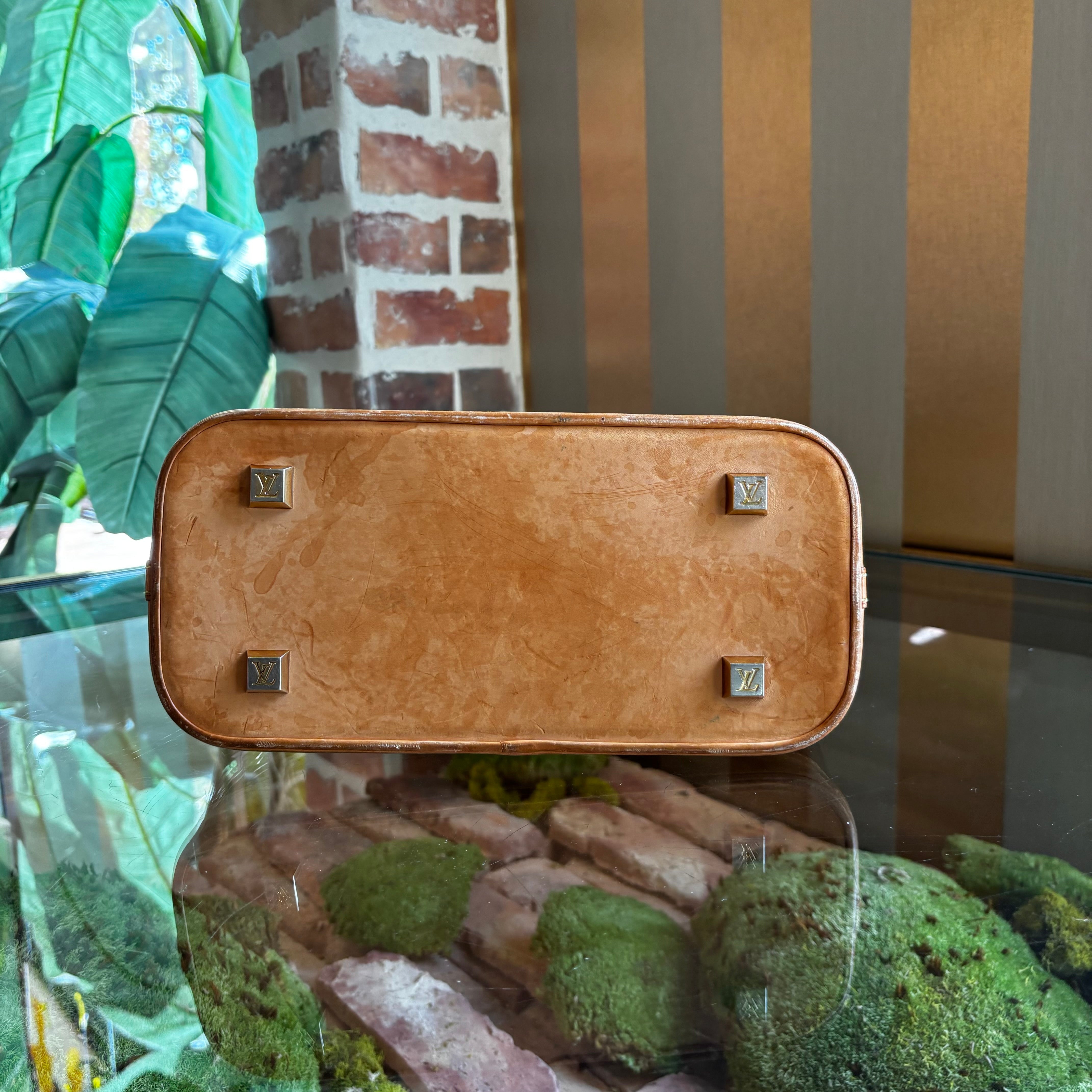 - Handle + Vachetta Leather Trim: The vachetta leather has patianed displaying wear such as: water spots, scuffing, soiling, rubbing, markings, creasing, scratches while appearing darker in certain areas(please refer to photos).