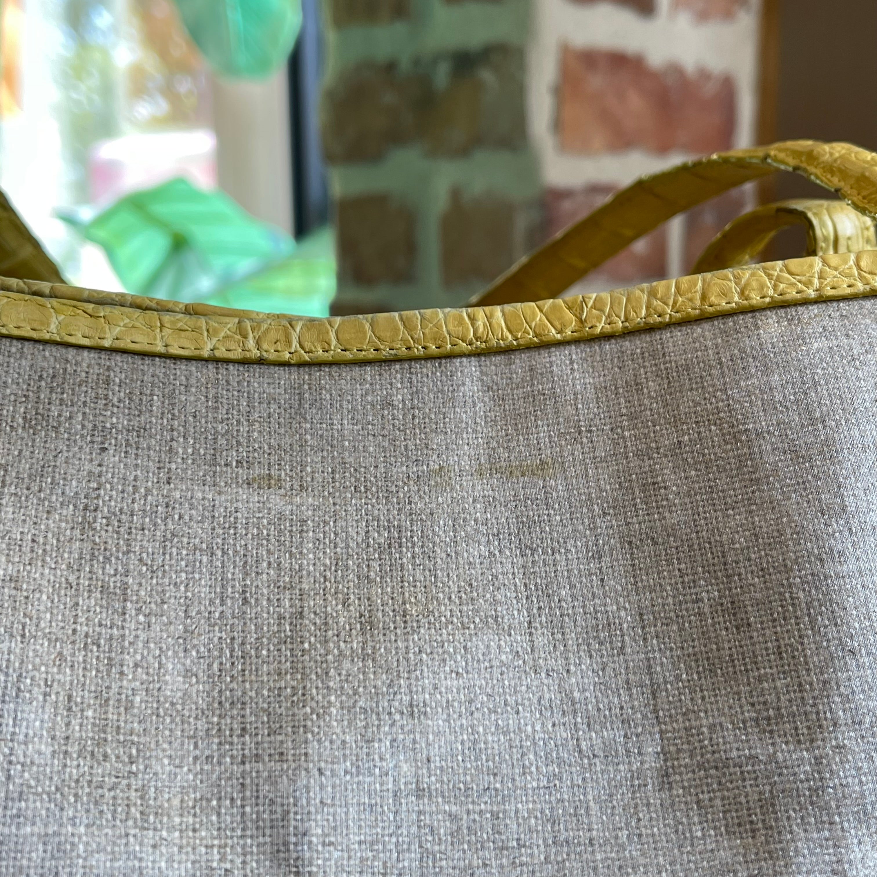 NANCY GONZALEZ Yellow Beige Coated Linen Crocodile Medium Erica Shopper Tote TS3453