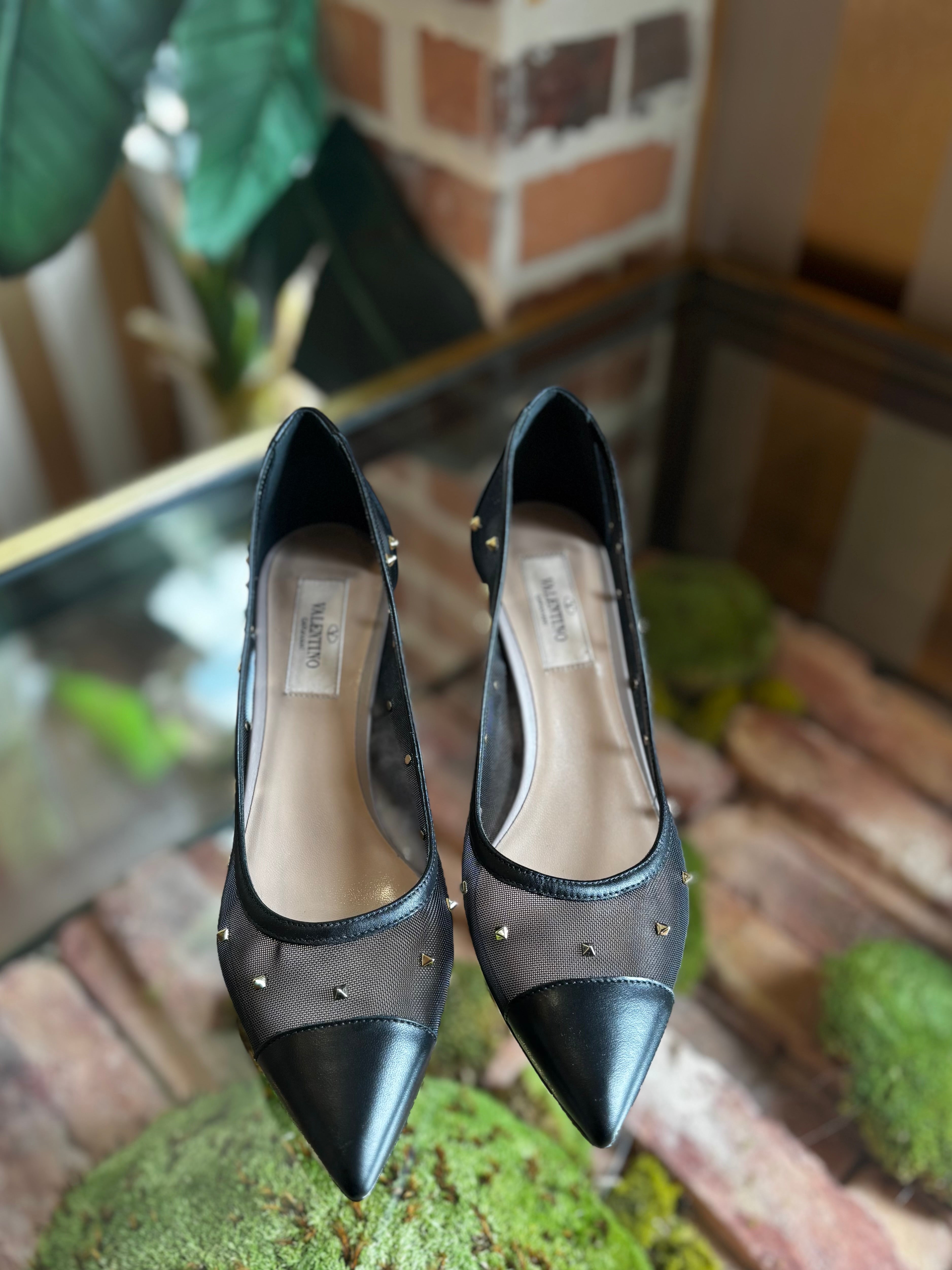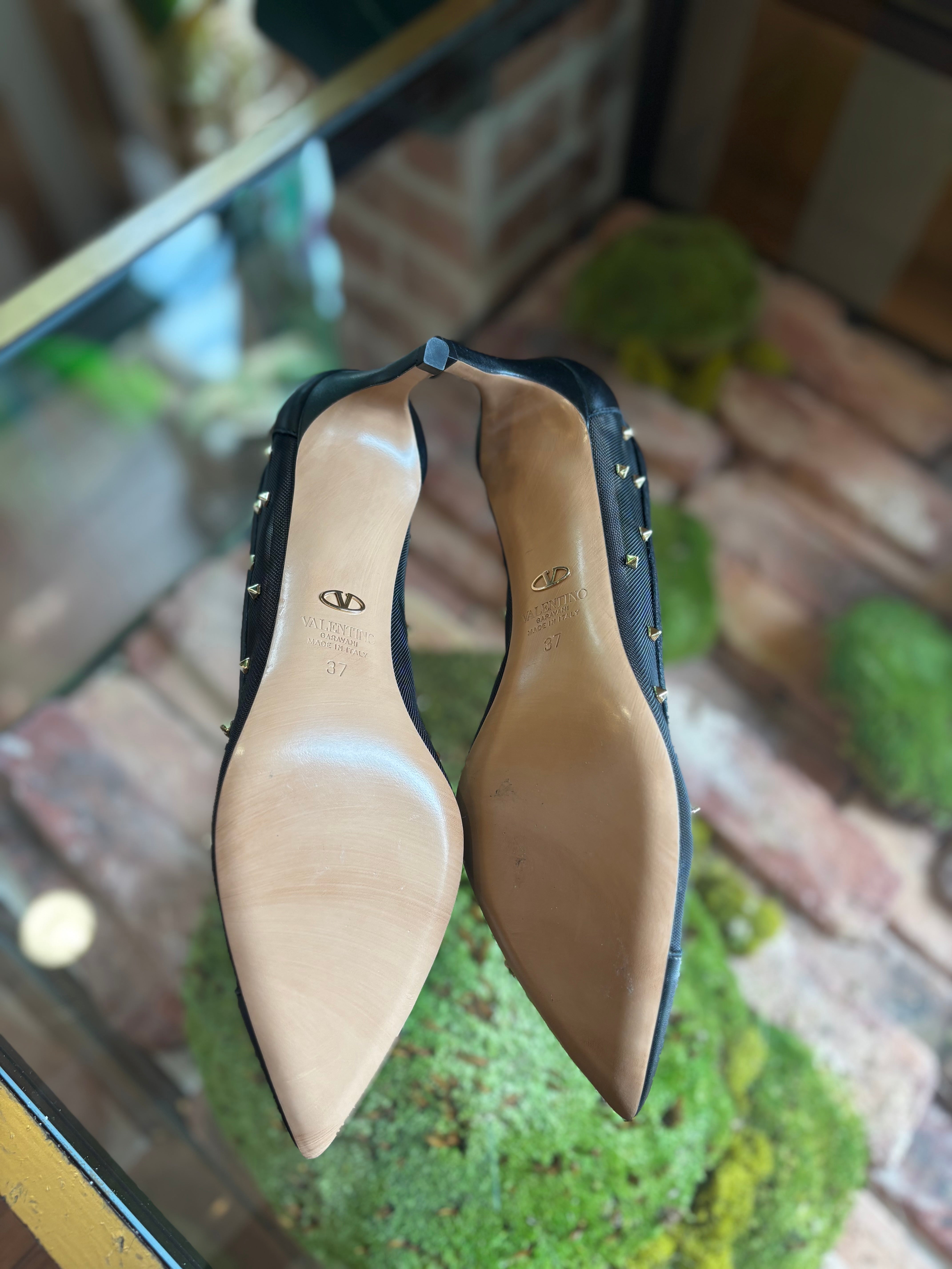 Elevate your elegance with the VALENTINO Mesh Embellished Shining Low Pumps. These refined shoes feature delicate mesh adorned with subtle embellishments, offering a luminous finish that catches the light gracefully. Designed with a low heel, they provide both comfort and sophistication, perfect for enhancing any polished ensemble with understated glamour. Overall in Great Condition. A-